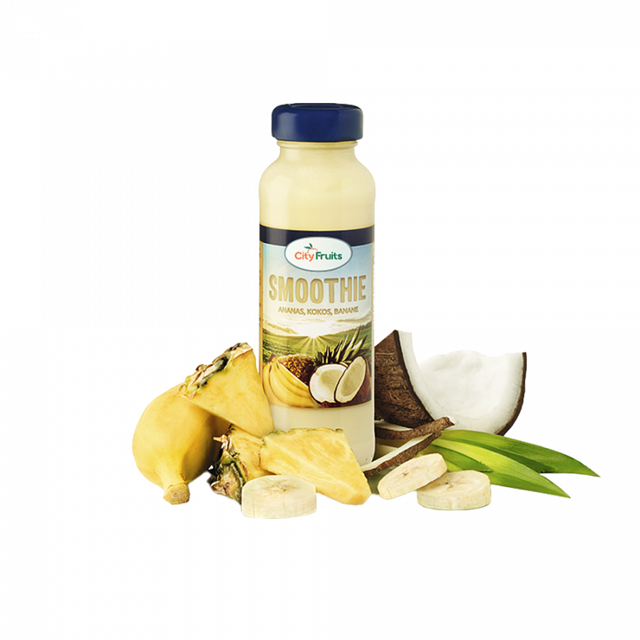 Tropischer Smoothie-Mix aus fruchtig-süßer Ananas, feiner Kokosnuss und cremiger Banane.
